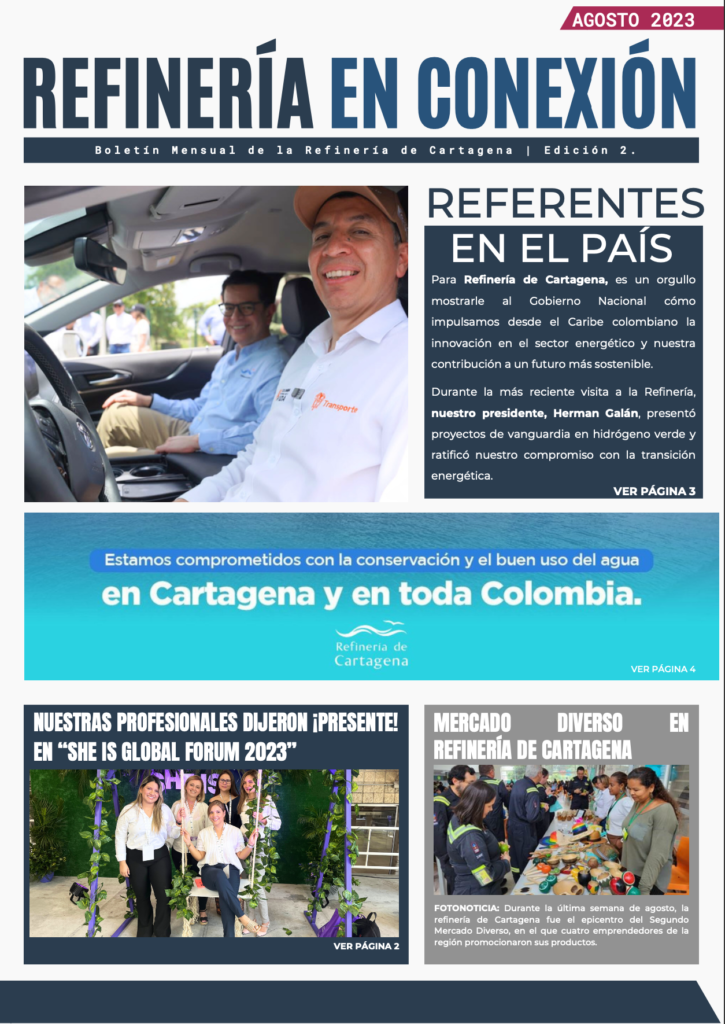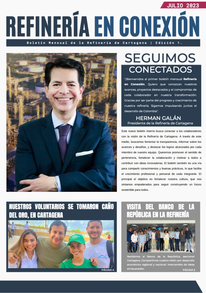 Dirigí medios internos de comunicación en Refinería de Cartagena, articulando la narrativa estratégica de uno de los proyectos de modernización energética más importantes de Colombia. El boletín fue el principal vehículo de comunicación interna en la organización durante el proceso de transición energética e industrial de la refinería más compleja del Caribe colombiano.