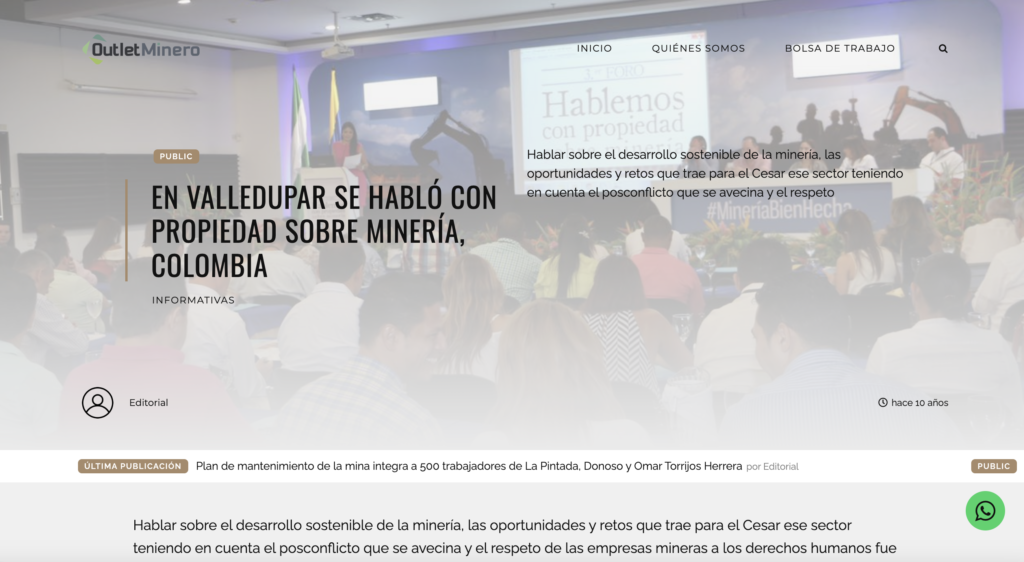 Lideré desde su concepción el diseño estratégico y la ejecución del foro anual «Hablemos con Propiedad sobre Minería», una iniciativa que reunía aproximadamente 200 participantes por edición, incluyendo periodistas, líderes de opinión, tomadores de decisiones y organizaciones del sector minero-energético del departamento del Cesar.